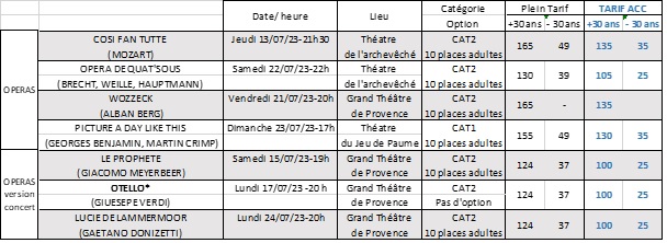 Voici l’annonce pour le festival d’Art Lyrique d’Aix En Provence (Opéras et Opéras version concert) (https://festival-aix.com/fr/programmation/opera#shortcut).