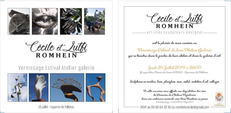 Vous trouverez les news letter présentant leurs "rencontres estivales " : Symposium de sculpture en Syrie sur un bloc de Basalte et Exposition Art et Mer avec 8 sculptures en Inox  à Dinard (Hotel Thalassa / Galerie Winston) : https://www.lutfi-romhein.fr/fr/rencontres-estivales-618